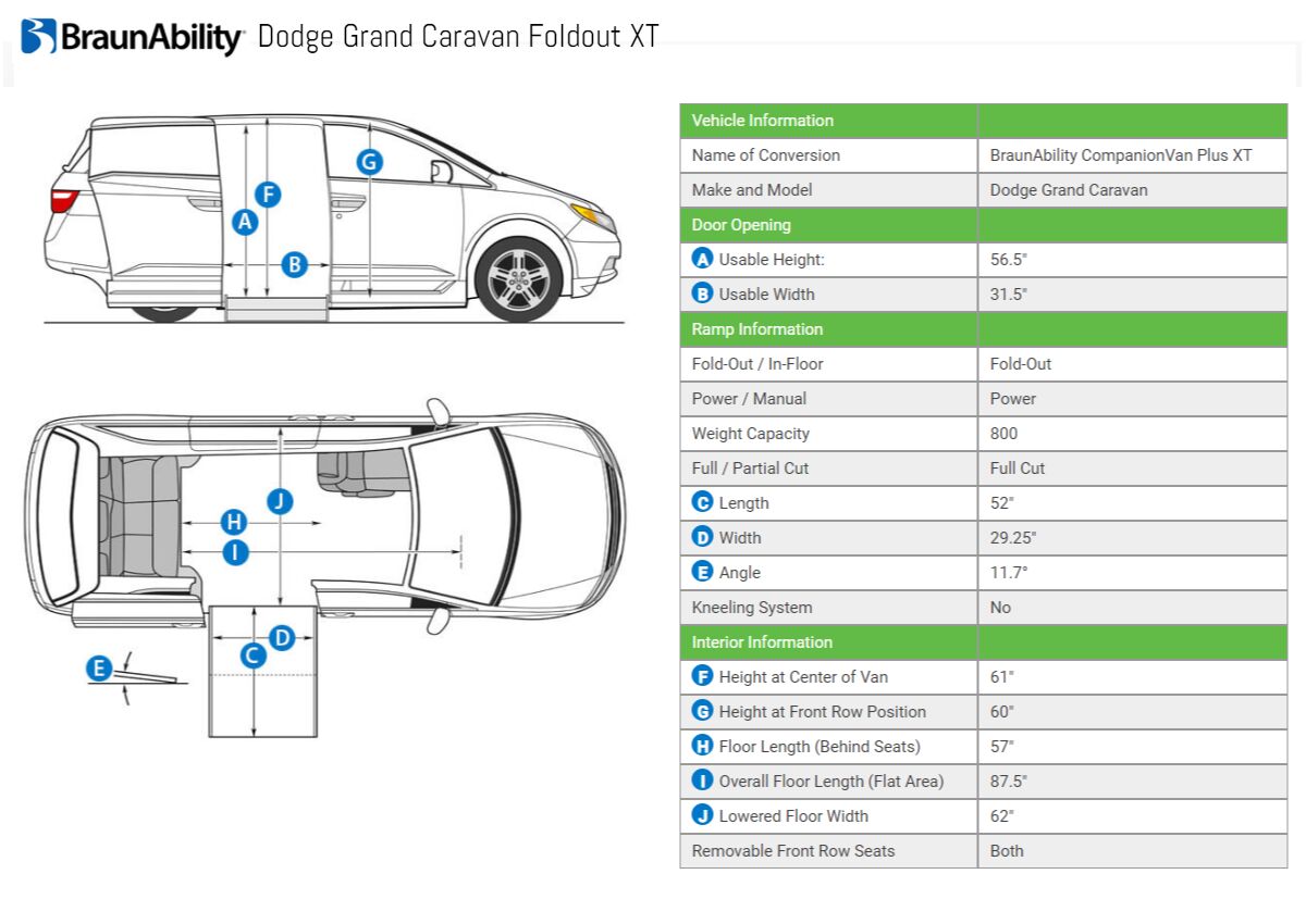 Home / Dodge Grand Caravan by BraunAbility | Foldout XT Side-Entry Dimensions | Aero Mobility