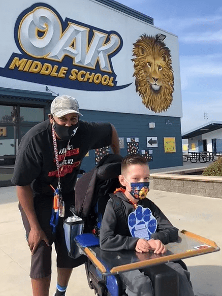 Aidan, aged 12, and his father need our help. Aidan, a youngster at Oak Middle School, is getting bigger and busier by the day. His single father loads and unloads his heavy chair multiple times throughout the day and lifts Aidan to and from that chair. It is difficult and exhausting.